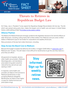 Threats to Retirees in Budget Reconciliation Package – July 2025